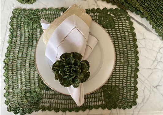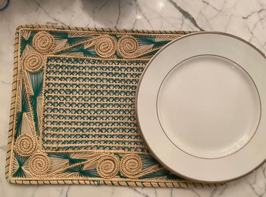 Americano Retangular Palha Natural Arabesco Verde