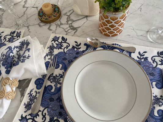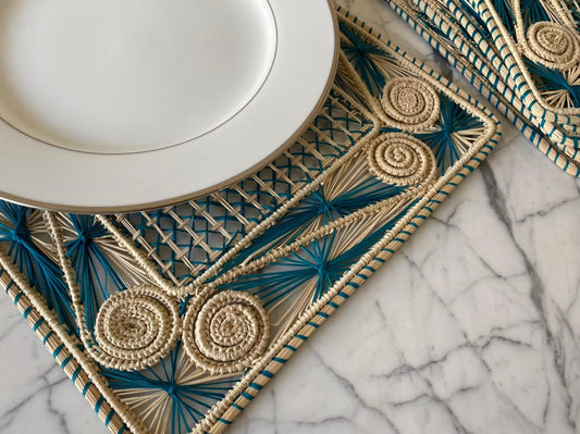 Americano Retangular Palha Natural Arabesco Azul