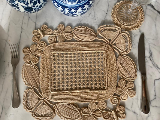 Americano Retangular Palha Natural Arabesco