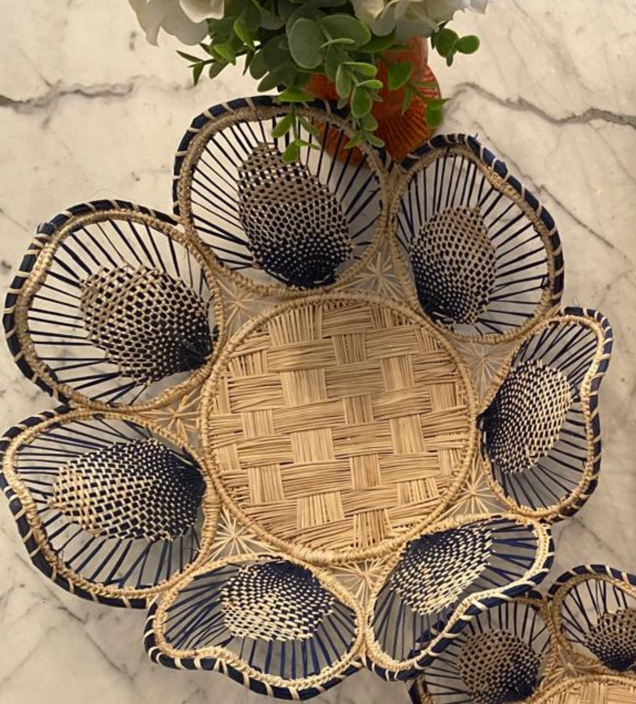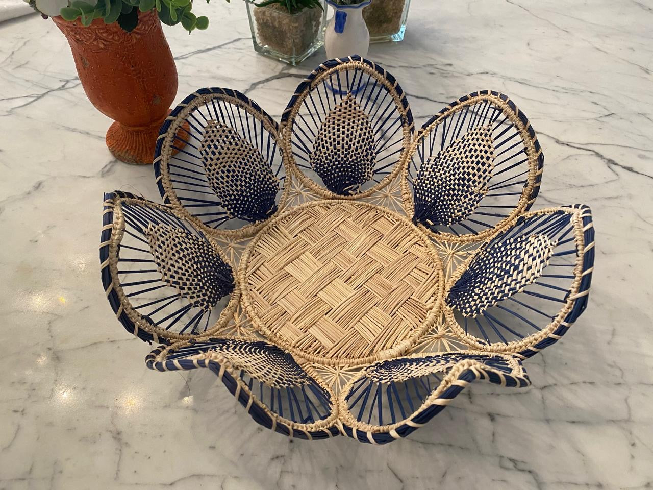 Cesta Palha Natural Flor Grande - Azul Marinho