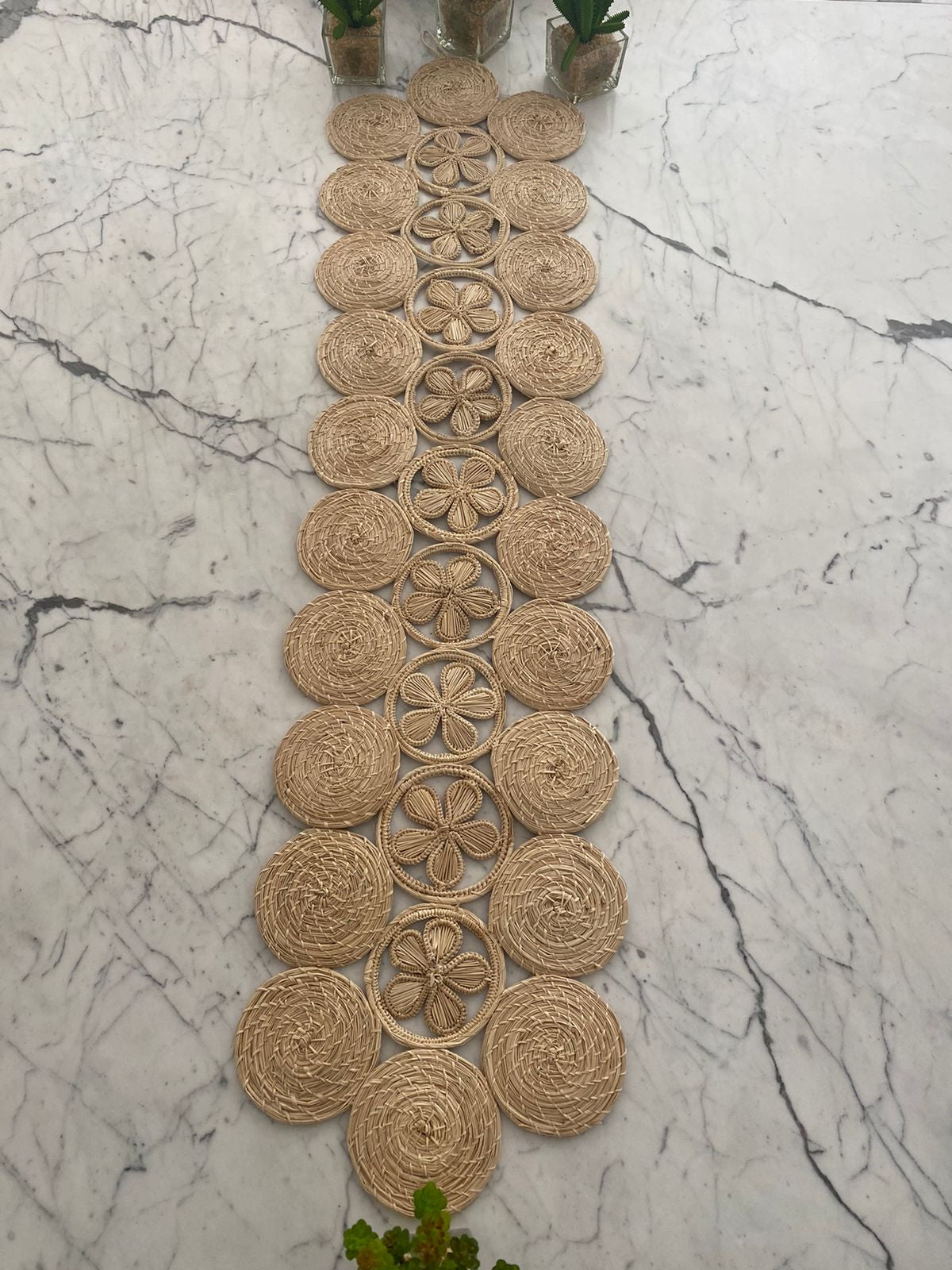 Composição: trilho de mesa em palha natural